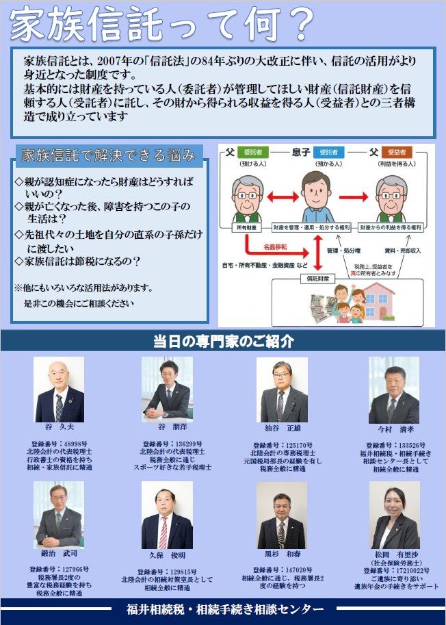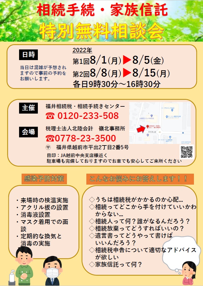 福井県嶺北事務所にて下記の日程で特別無料相談会を実施します。